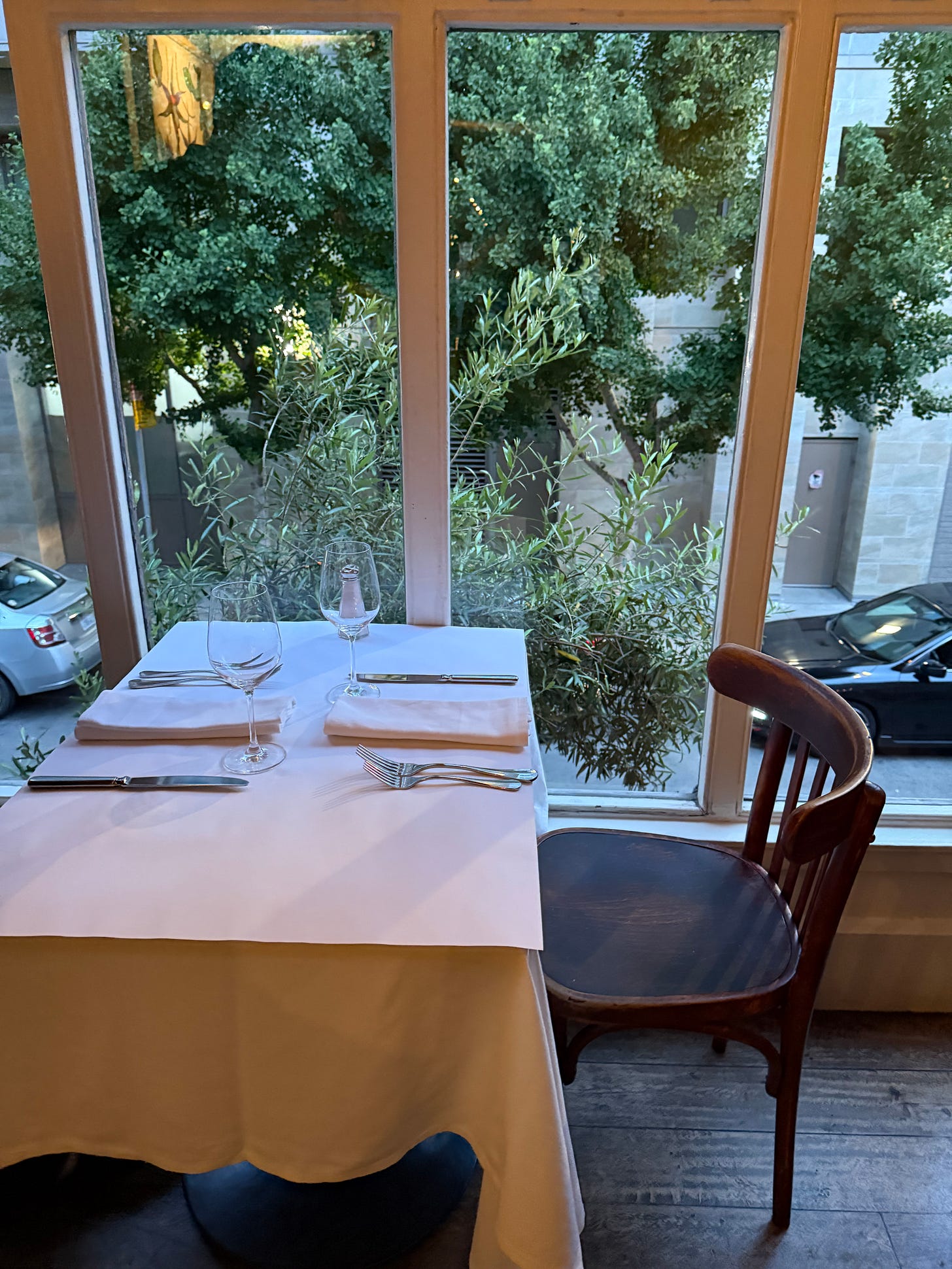 Dinner, above: with wide-leg trousers and ballet flats